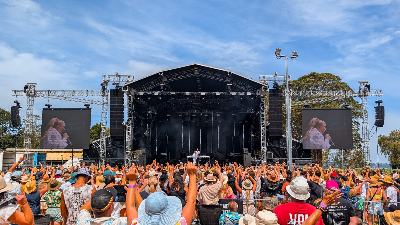 To enter the Lookout Festival at Speers Point Park on the beautiful edge of Lake Macquarie was to witness a study in heat survival as much as it was a concert. On this very hot Saturday in February 2026, the primary objective of the early arrivals was not to secure a prime position for the music, but to strategise a defence against the sun. There was a certain shared acknowledgment that the day was a marathon, not a sprint. The venue itself was fantastic, bordered by the water where a group of boats strategically positioned themselves to enjoy a free vantage point from the water. A slight breeze regularly teased, offering brief relief, but for the most part, the atmosphere was hot and heavy with anticipation.